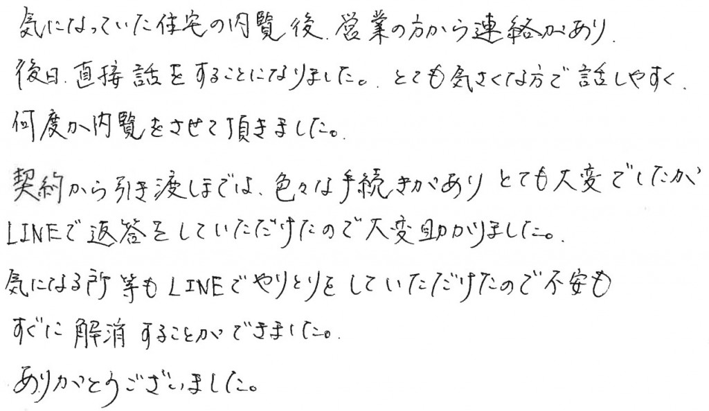 W-377 家探しから、とても親身になって一緒に探してくださり感謝しております