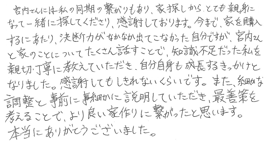 w-360 未来の自分たち家族を想像しながら、楽しく家探しをする事が出来ました