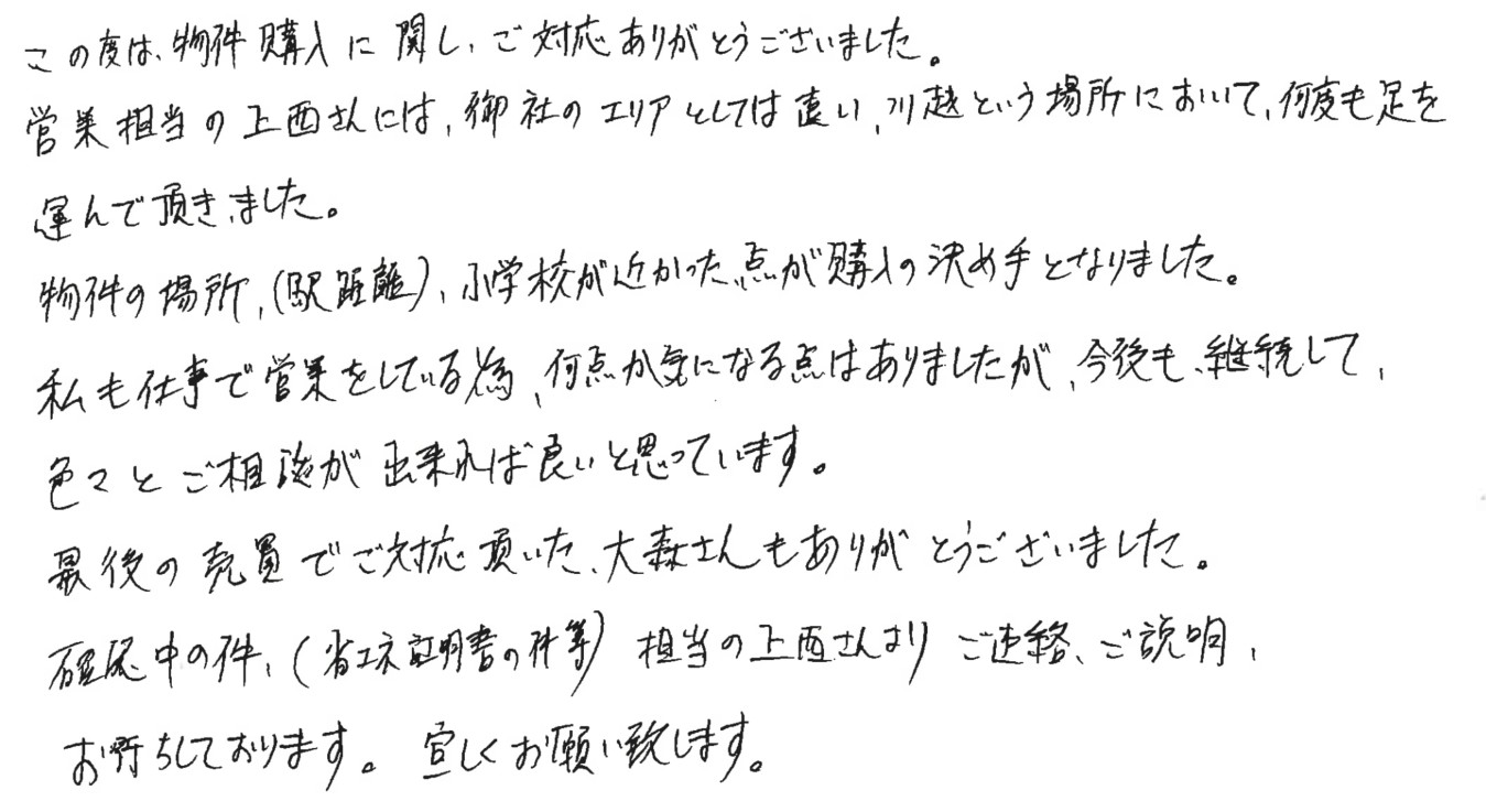 W-382 今後も継続して、色々とご相談が出来れば良いと思っています|さいたま市・川口市・蕨市・富士見市・ふじみ野市・草加市・越谷市・所沢市・川越市・他埼玉県全域の不動産売買専門|株式会社パークホーム